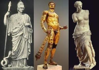 Vale ressaltar que alguns templos costumam ser ornamentados com pequenas estátuas de três deuses gregos, ilustrando de forma ainda mais evidente o que já está representado pelas colunetas: